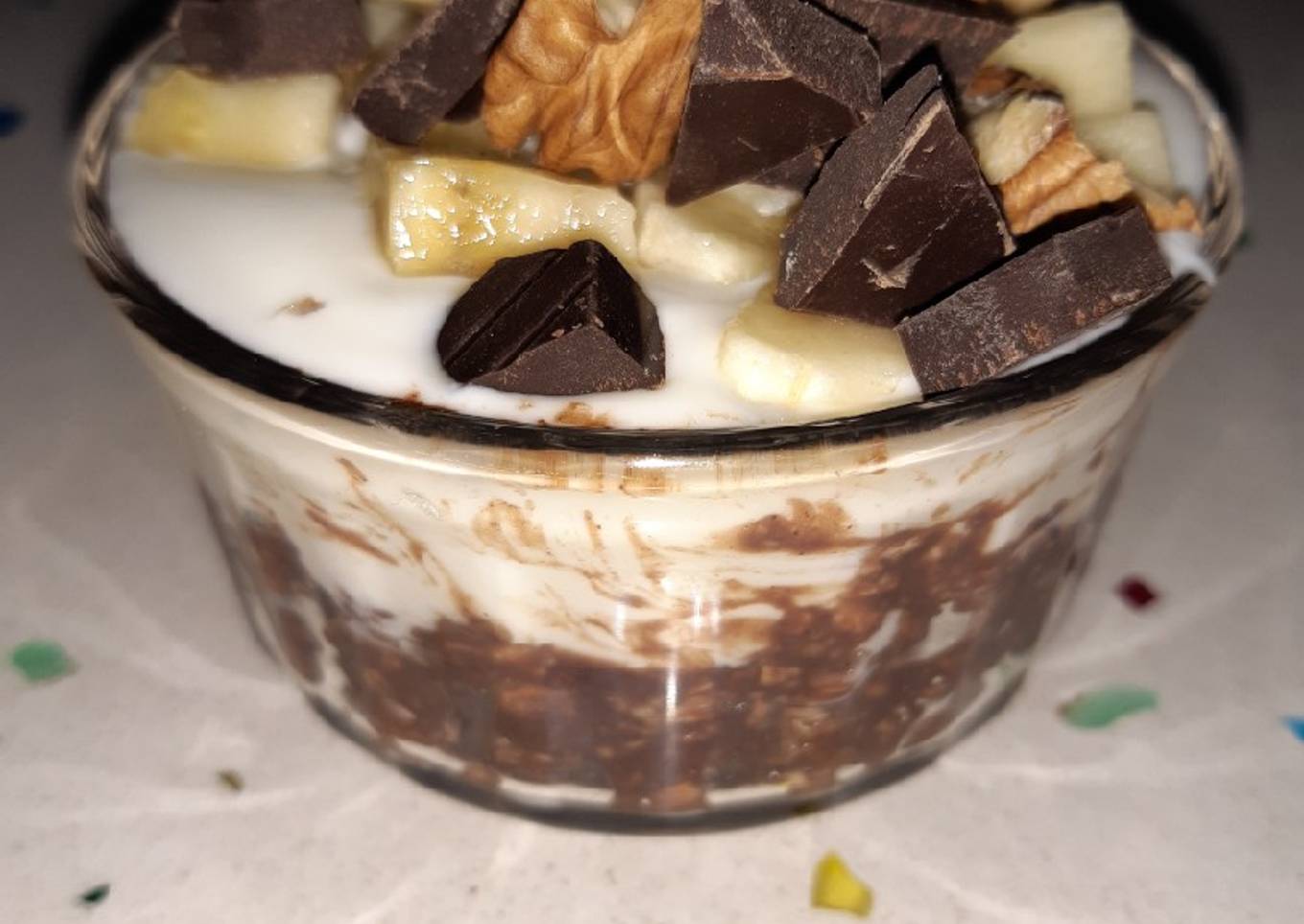 Hello everybody, hope you are having an amazing day today. Today, we're going to make a special dish, Mini - porridge cacao 2 capas Fit. One of my favorites food recipes. This time, I will make it a bit unique. This is gonna smell and look delicious.