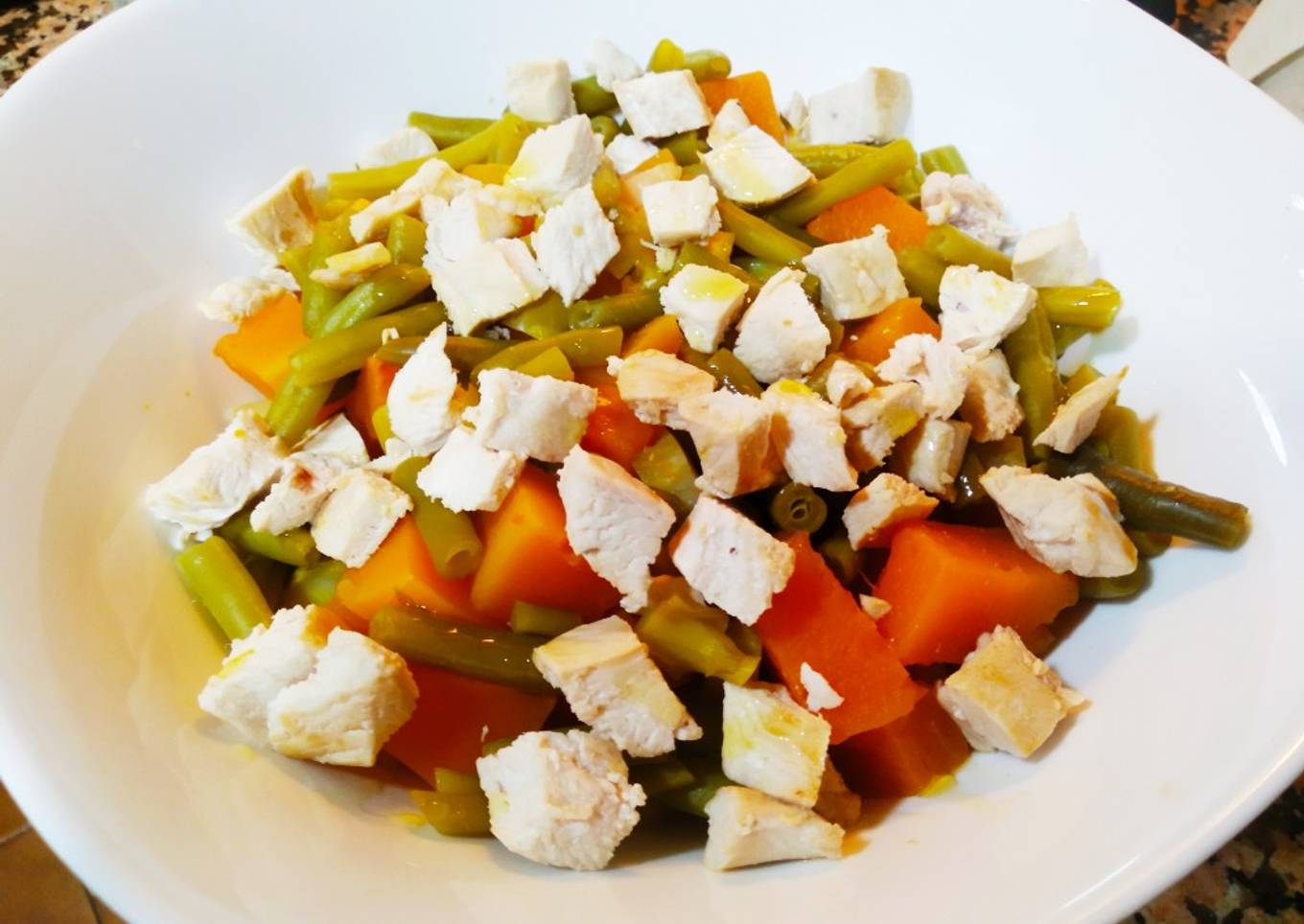 - 2 filetes pechuga de pollo a la plancha cortados a dados