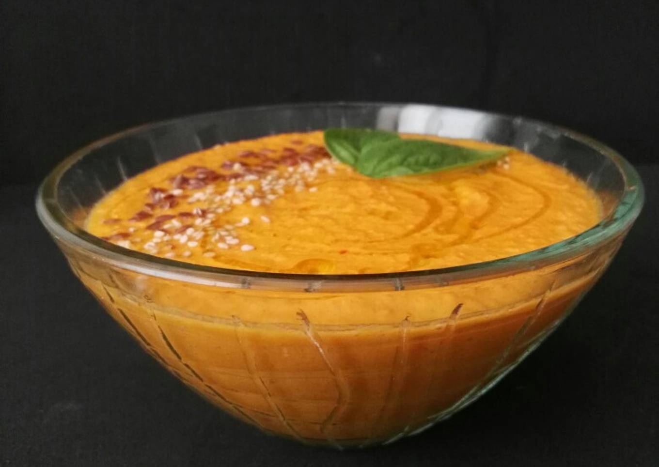 - Emplatar, adornar al gusto, yo con semillas de lino, semillas de sésamo y albahaca fresca. Un chorrito de aceite de oliva virgen extra (Frantoio). Servir bien frío