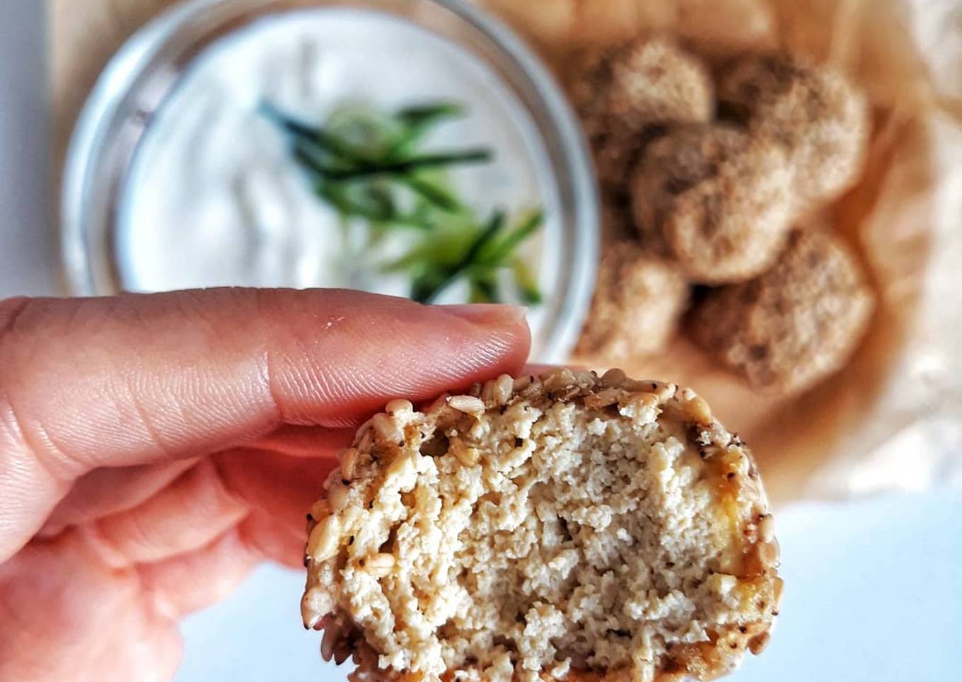 Trituramos el tofu con la levadura de cerveza y la cebolla en polvo hasta obtener una pasta, damos forma de bolitas con ayuda de 2 cucharas o con las manos untadas en aceite, dejamos reposar 30 minutos en la nevera. - Pasamos las bolitas primero por la mezcla de harina de garbanzo y agua y luego por s茅samo, metemos en el horno precalentado a 210° y dejamos unos 15 minutos. Y ya estar铆a listo para disfrutarlas.馃槉