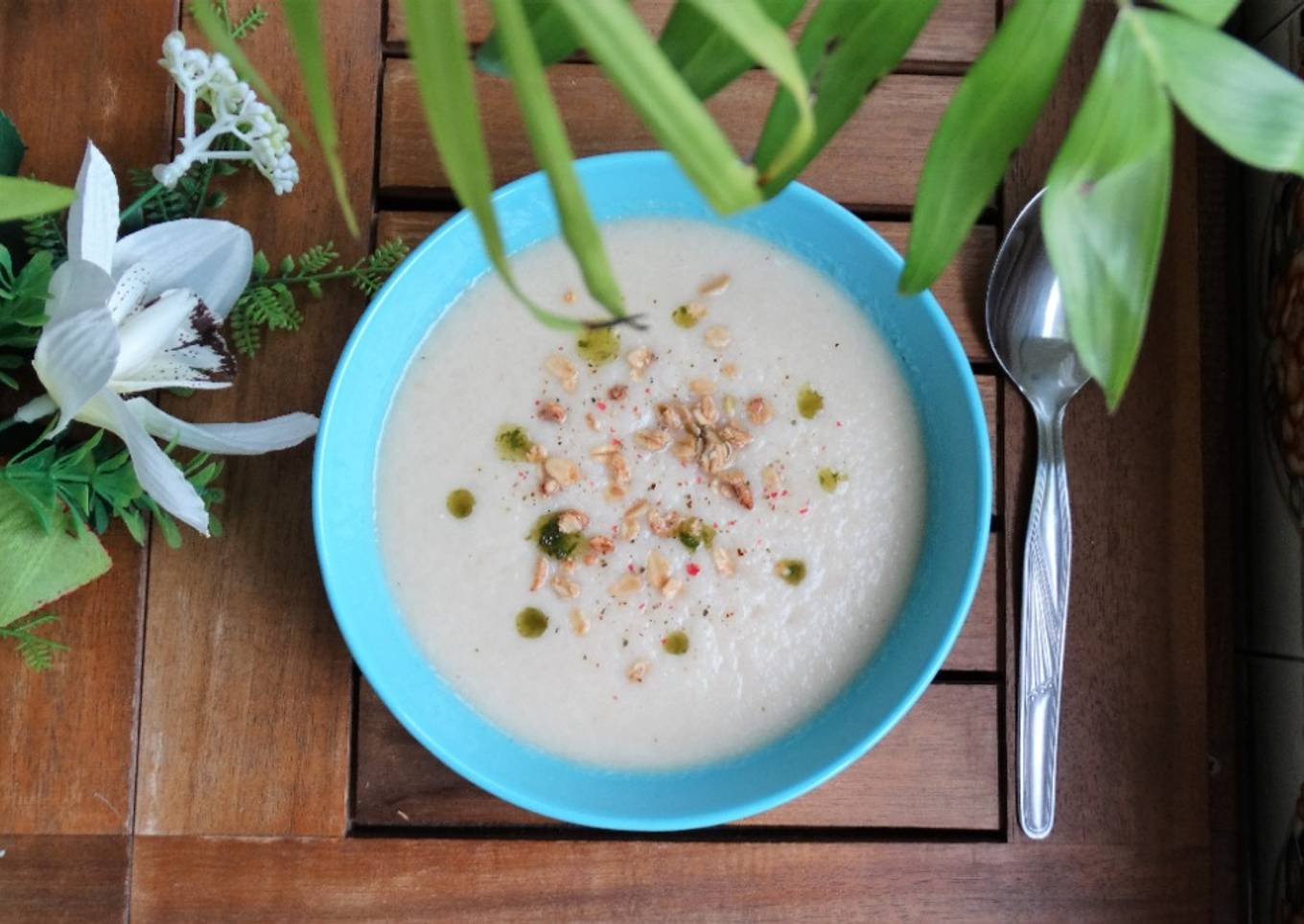- Presentalos la sopa bien fría con unas gotitas de aceite de albahaca por encima, pimienta de colores molida y unas semillas de avena tostadas. ¡Y listo!